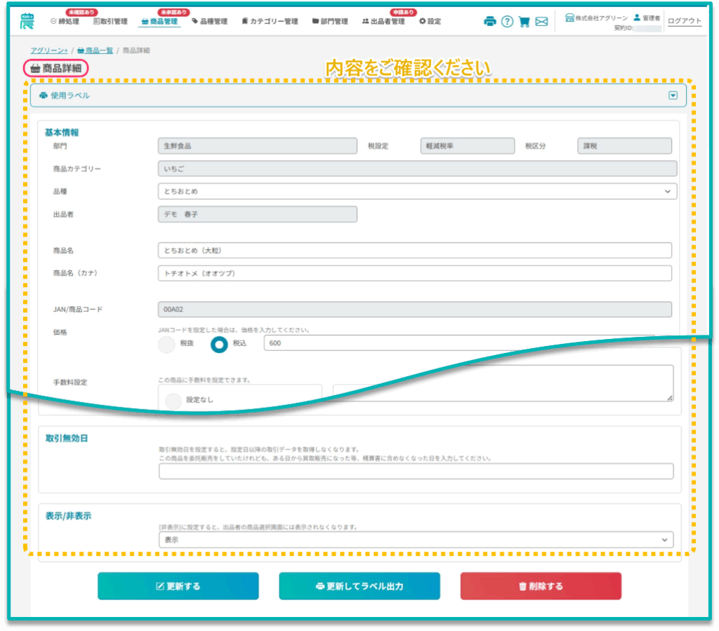 | 食品表示などの付加情報がある場合は、承認してください。 | |