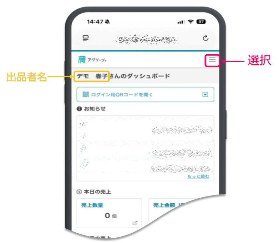↑ 出品者マイページのトップ画面(ダッシュボード)
