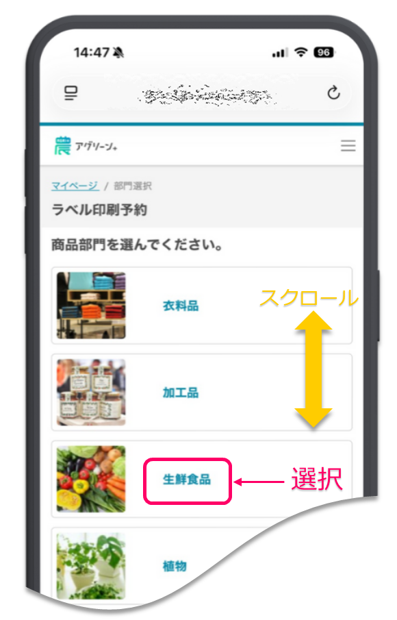 ラベル印刷予約 は、出品者が店舗にて商品ラベルを印刷する前に、お手持ちのスマートフォン等の端末から該当商品の情報を事前に登録する機能 です。出品者向け マイページ から実行できます。