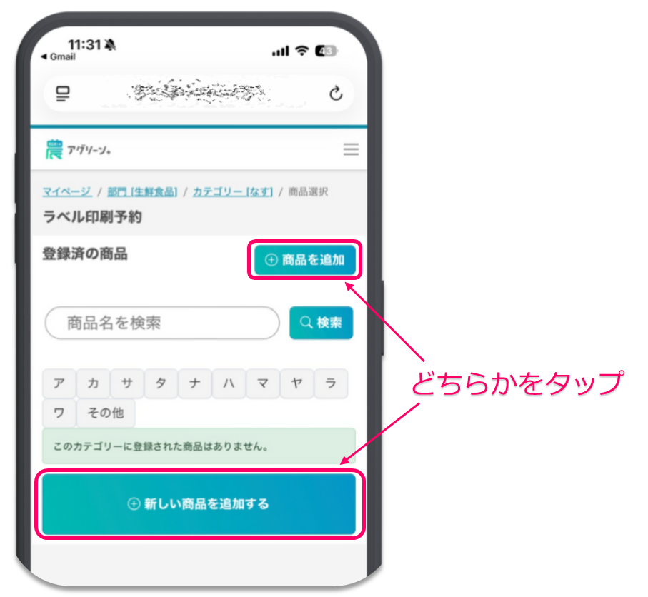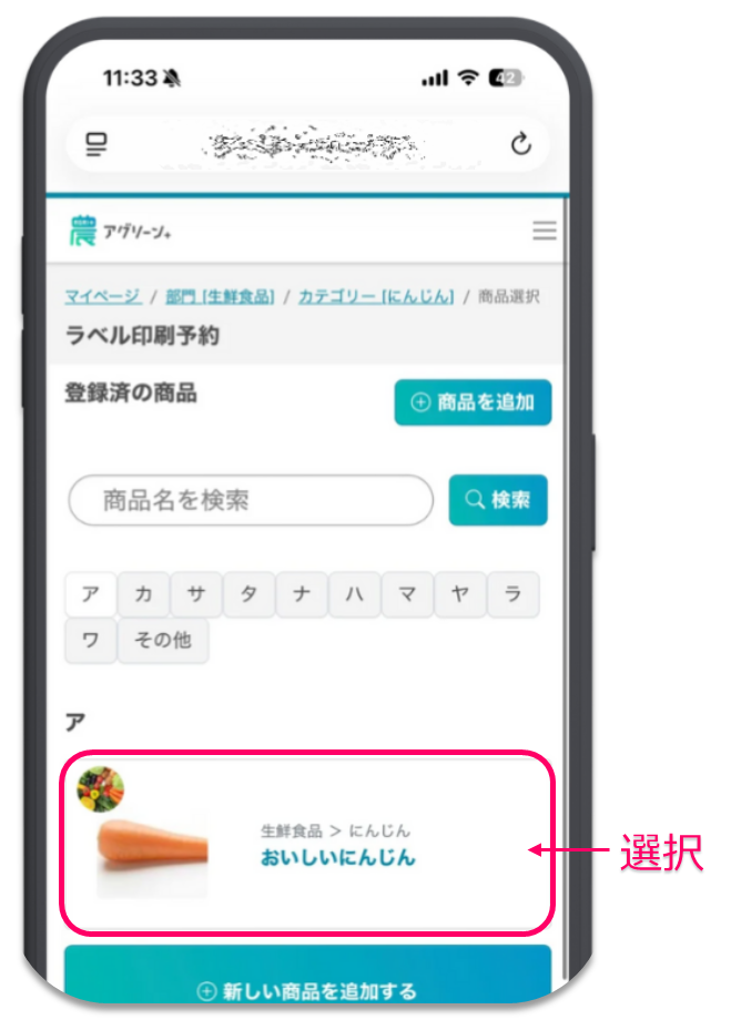 品種を選択しない場合は、そのまま [ 商品を追加 ] または [ 新しい商品を追加する ] ボタンをタップしてください。