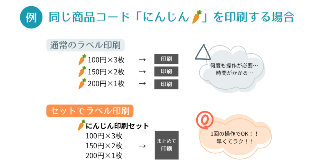 同じ商品コード で 価格や枚数が異なるラベル を、まとめて印刷 できる機能です。